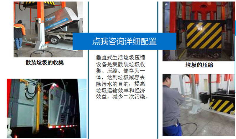 該產(chǎn)品適用于城鎮(zhèn)生活垃圾的儲(chǔ)存、壓縮和轉(zhuǎn)運(yùn),通??稍O(shè)置在靠近街道及居民生活小區(qū)內(nèi),是當(dāng)今生活垃圾處理的理想設(shè)備。