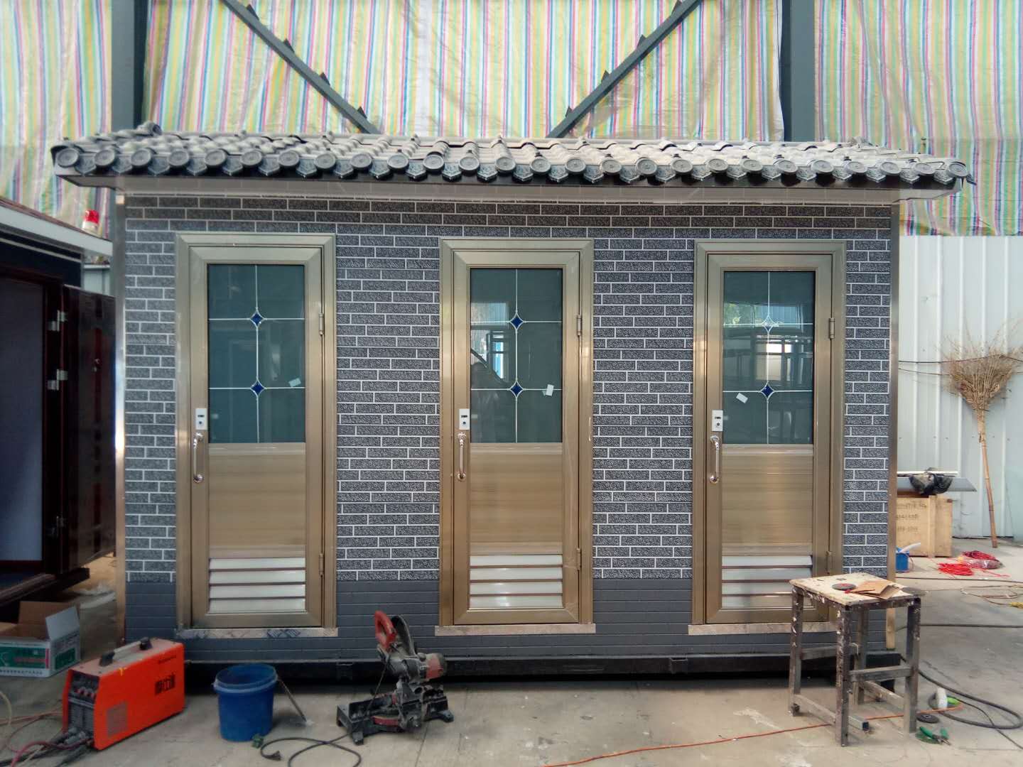 1、房體結(jié)構(gòu): 采用輕鋼龍骨結(jié)構(gòu),鋼材全部使用國(guó)家標(biāo)準(zhǔn)鍍鋅鋼材。根據(jù)房體的大小特選用國(guó)標(biāo)方管(50-100)焊接而成。鍍鋅管厚度為2.8mm,方管經(jīng)過(guò)除銹后進(jìn)行鍍鋅、防腐處理。這樣就會(huì)延長(zhǎng)廁所使用壽命。
