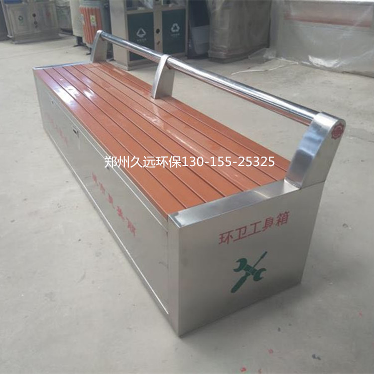 環(huán)衛(wèi)工具箱:也叫保潔員工具箱,環(huán)衛(wèi)工具椅,保潔員休息座椅,市政保潔箱等。工具箱常用尺寸為:長2400*寬500*高550mm,也可以做成2米,2.4米,2.7米等,寬度和高度也可以定做,滿足不同客戶、不同場所的使用要求。